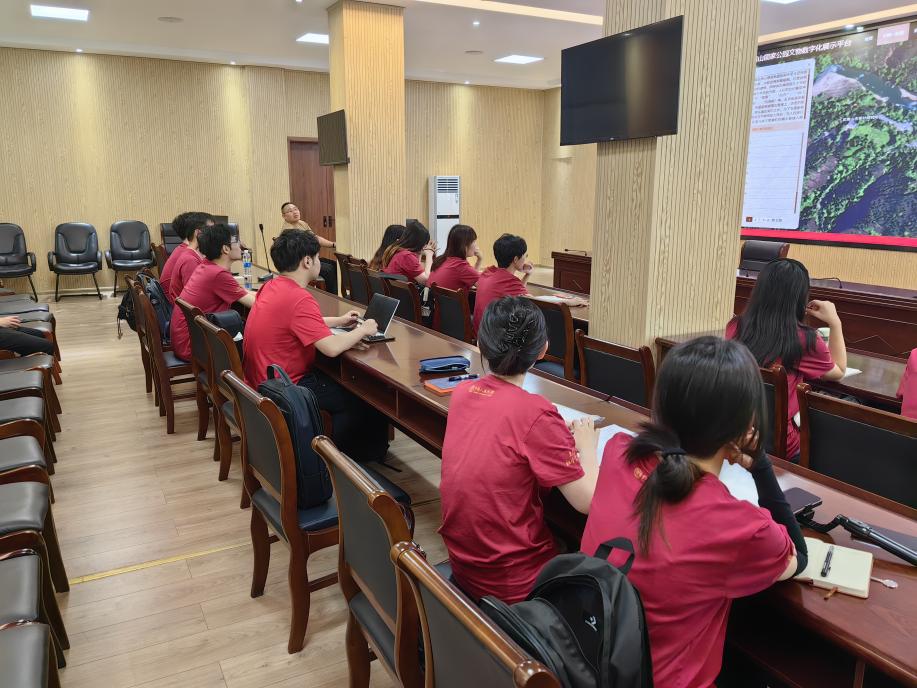 7月25日上午,调研团来到武夷山国家公园智慧管理中心,探访国家公园生态保护的“中枢大脑”。该智慧管理平台包括景区客容、自然资源、巡护执法、防火预警、宣传教育等若干子系统,综合运用互联网、无人机、地理遥感等科学技术,对巡护管理、森林防火、游客保有量、自然环境要素等进行监测预警。这不仅有助于生物科考、应急反应、生态保护等方面的管理效能,还能提升国家公园的游客服务质量、合理调度各区域游客活动人数。在了解了国家公园“天地空”全方位、全天候监测模式之后,师生们深切感受到科技赋能对于国家公园建设的重要意义。