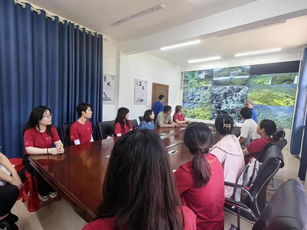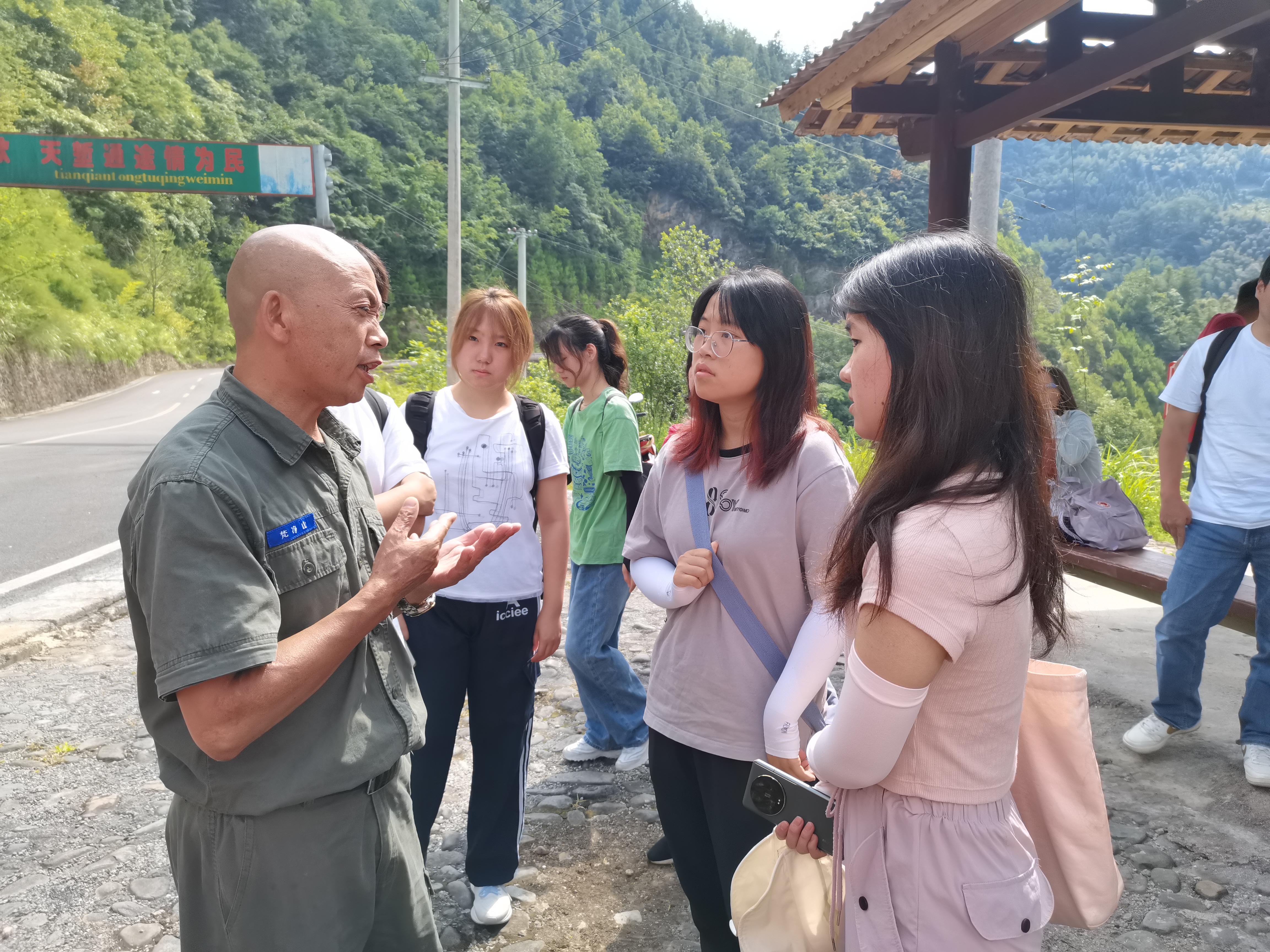 在紫薇镇管理总站金厂管理分站,金厂村党支部书记、金厂管理站林管员队长田茂雄向调研团师生讲述了自己从曾经的“资源破坏者”转变为“生态守护人”的动人故事。上世纪八九十年代,金厂村采金挖矿盛行,山林被大片砍伐,河水被泥沙污染,严重威胁下游的水稻灌溉。2002年,印江县人民政府关停金矿,田书记也从曾经的采矿者转变为护林员。2004年,田书记接过村支书的重担,通过细致入微的工作提高村民们保护环境的意识。此外,田书记还带领村民们开办农家乐,经营“金豆腐”“灰豆腐”等特色生态产品,在恢复和保护生态的同时将“绿水青山”转化为“金山银山”。从资源的掠夺者、环境的污染者到自然的守护者,田书记的个人经历,是国家生态文明建设不断推进、人与自然和谐共生理念深入人心的生动写照,他的故事激励着生态环境学院的学子们勇于肩负起生态环境保护的重任,以实际行动守护这片蓝天绿地。