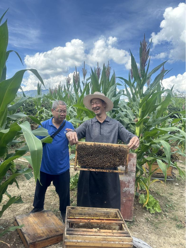 随后,在何科长的带领下,调研团前往蜂农家中进行实地探访。蜂农热情地介绍了院子中的新型蜂箱、玉米地与山泉水源,满怀自豪地向大家展示自家养蜂成果。“廛居何似山居乐?”——这是同学们走访时最真挚的感受,大家纷纷表达对梵净山间寄情山野的惬意生活的向往。