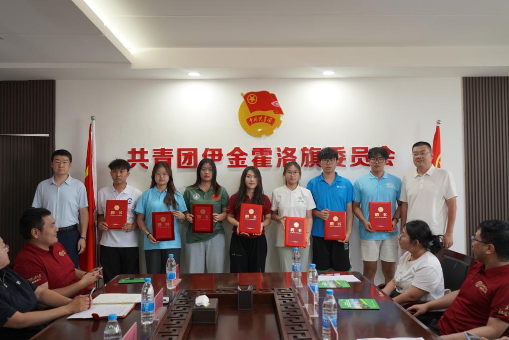 实践团带队老师和学生代表参加了在伊金霍洛旗举办的青年人才座谈会暨青年城市推介官聘用仪式。座谈会上,伊旗相关部门负责人详细介绍了面向青年人才的优惠政策以及青年城市推介官的核心职责,并向七所高校的青年城市推介官颁发聘书。中国人民大学王纪云同学作为代表之一,正式受聘成为伊金霍洛旗青年城市推介官。