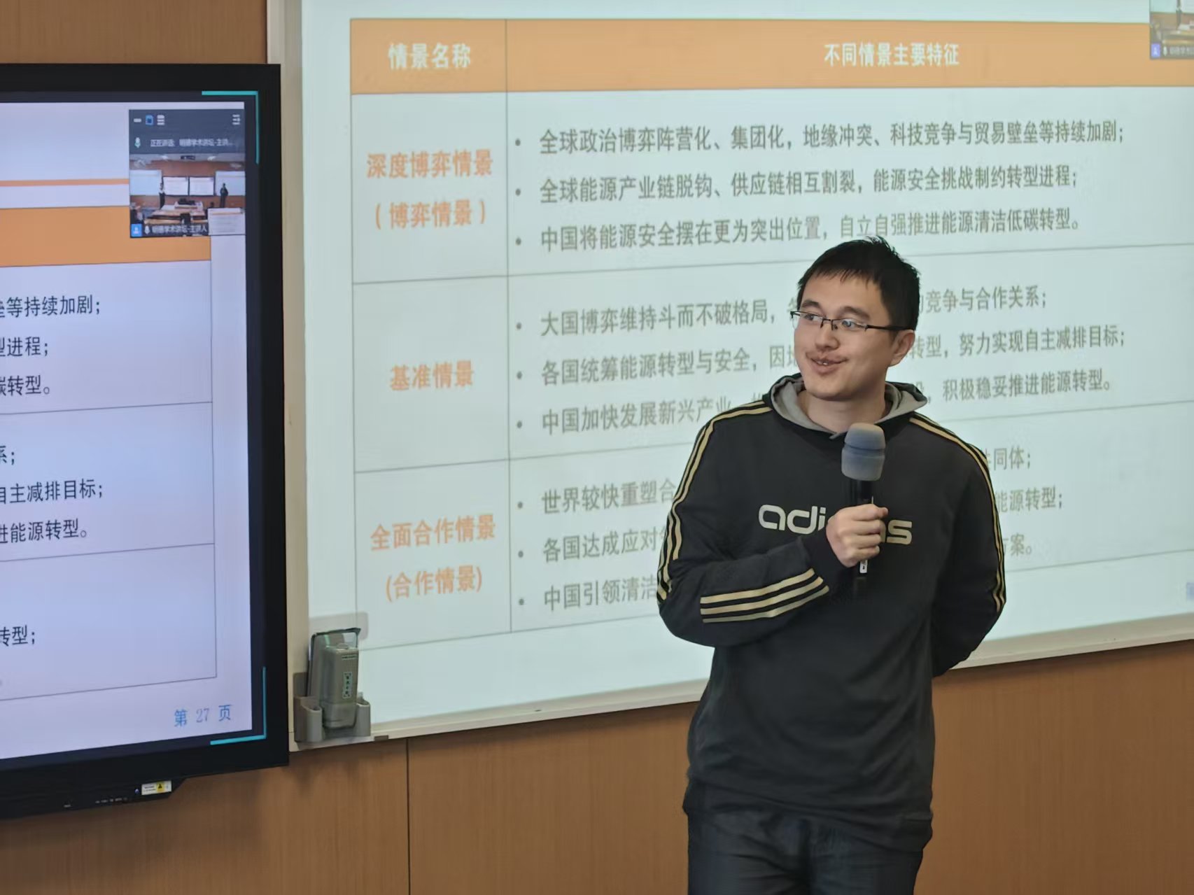在提问交流环节,多位同学围绕新能源布局与电力系统安全的关系、“弃风弃光”的技术路径权衡、未来能源格局变化、能源公平与公正转型、发展中国家与发达国家历史排放责任、地缘政治与技术扩散受阻等问题与王利宁研究员进行了深入探讨,气氛活跃,师生反响热烈。