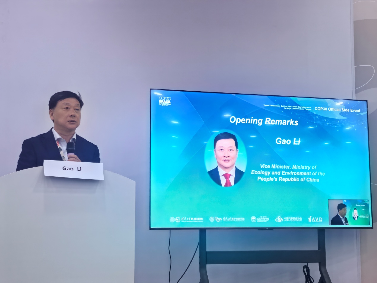2025年11月18日,在巴西贝伦举办的《联合国气候变化框架公约》第30次缔约方会议(COP30)期间,由中国人民大学生态环境学院牵头主办,中国气象服务协会(CMSA)与 Actions Vitales pour le Développement Durable(AVD)联合主办,清华大学环境学院和清华大学碳中和研究院提供支持,新京报与贝壳财经担任媒体合作伙伴的COP30官方边会“构建开放透明的气候数据基础设施:加速全球碳中和进展”成功举行。会议由中国人民大学生态环境学院助理教授张诗卉主持,吸引了来自政府部门、国际组织、科研机构和青年社群的多方参与,呈现出科学、政策与实践之间的深度对话。